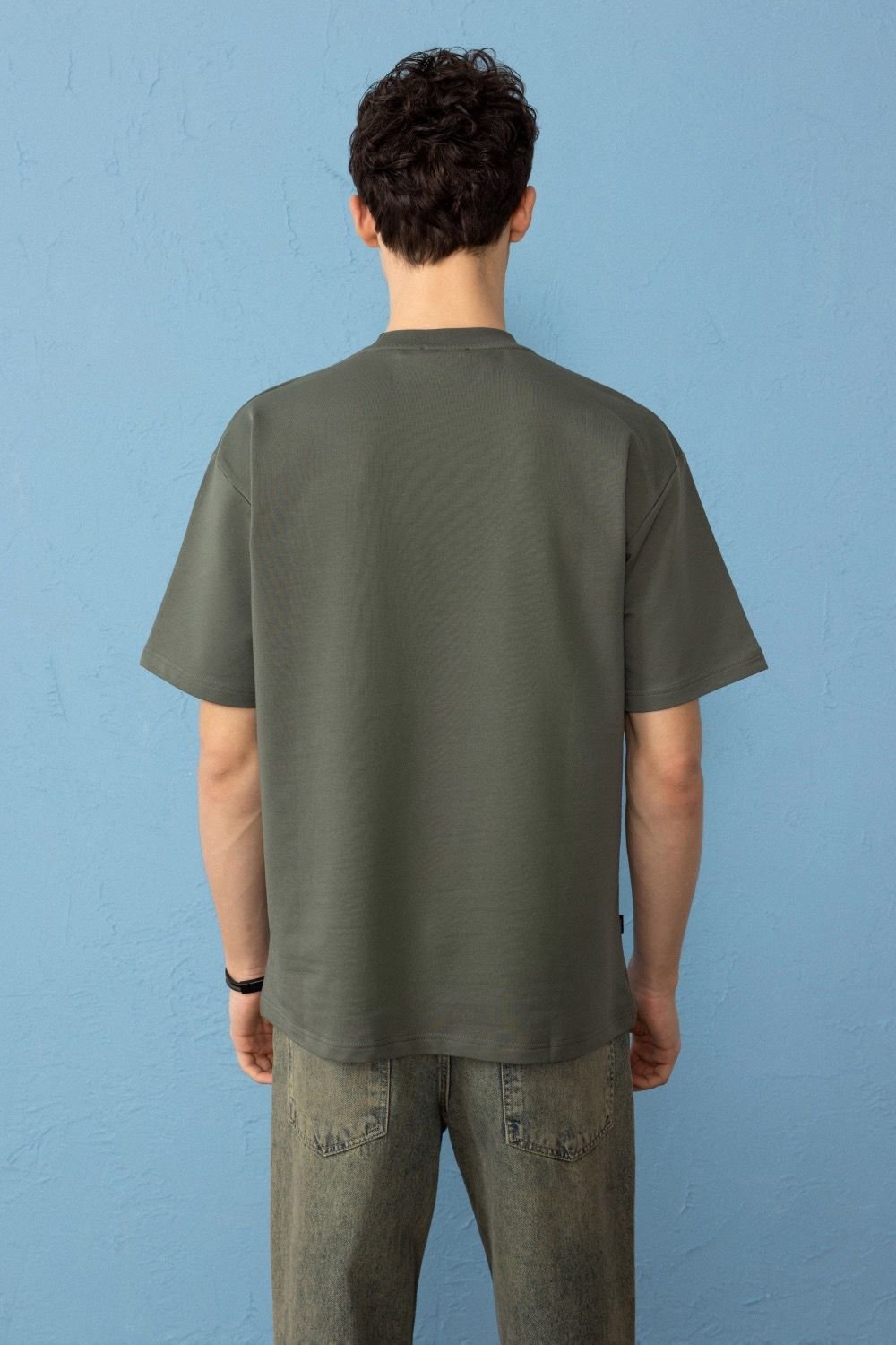Minimal Baskılı Haki Oversize Erkek T-shirt