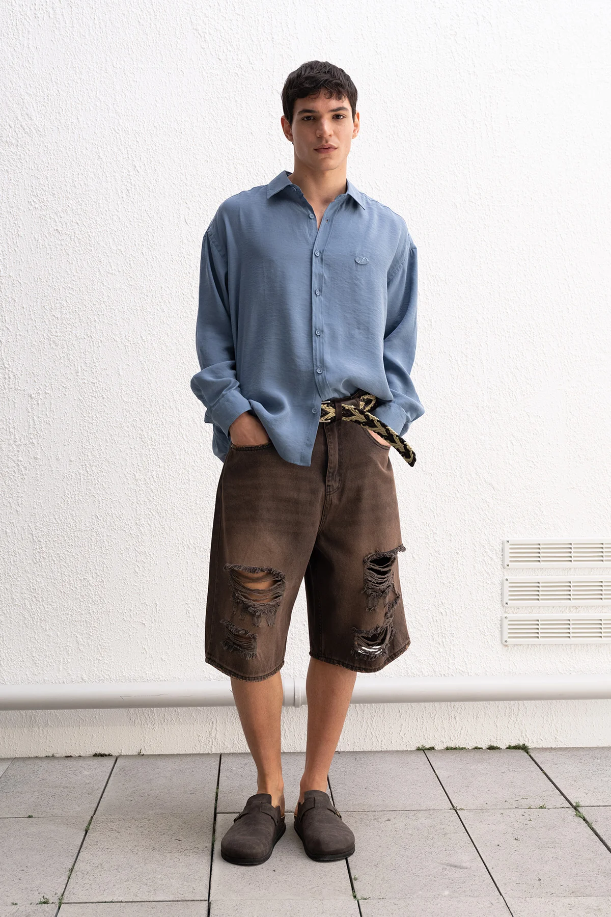 OVERSIZE MODAL KİREMİT GÖMLEK