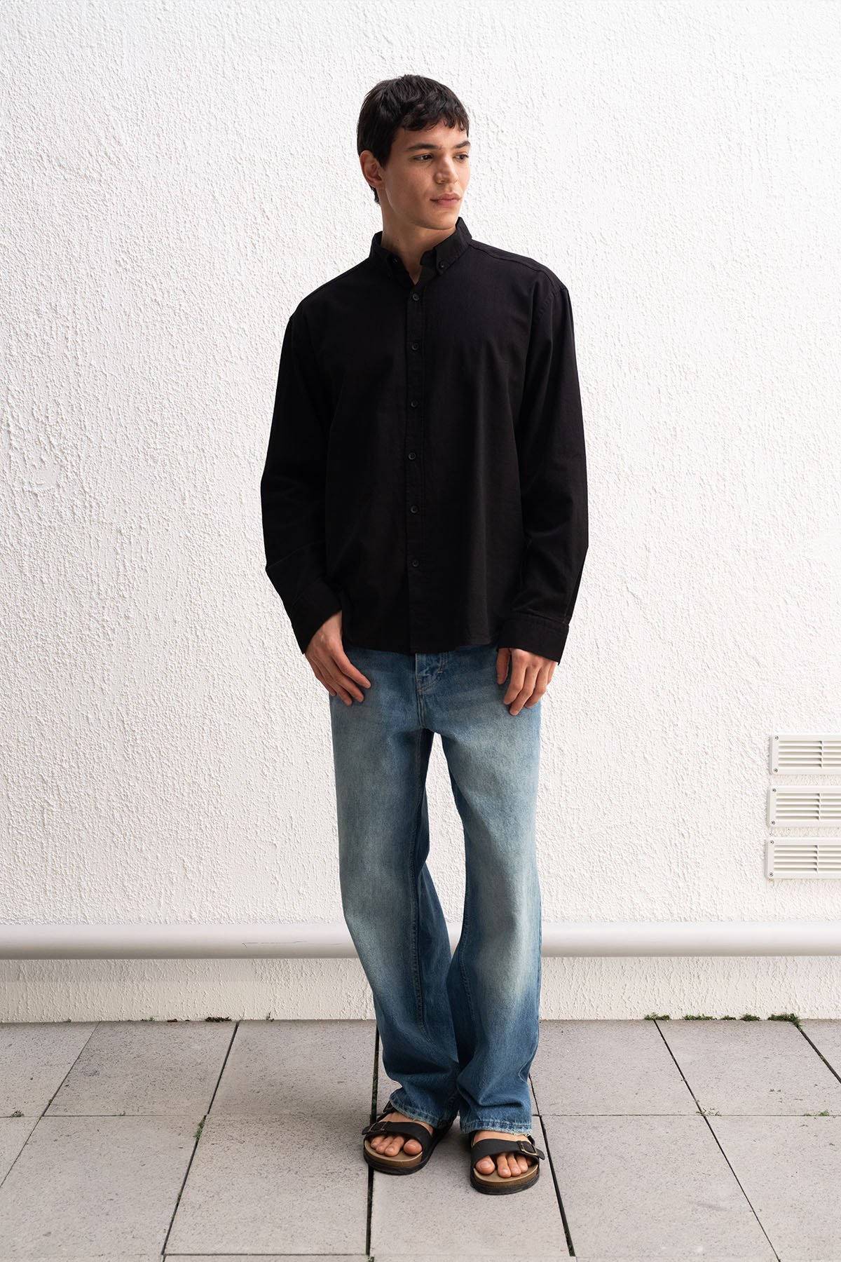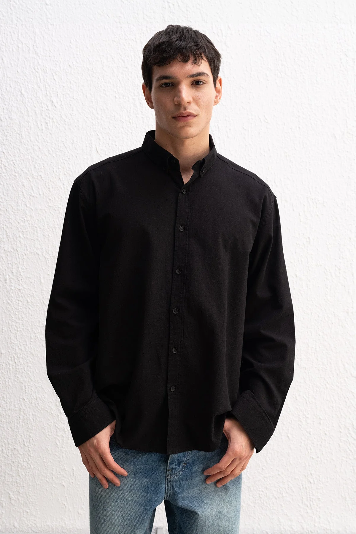OVERSIZE FRESH KETEN SİYAH GÖMLEK