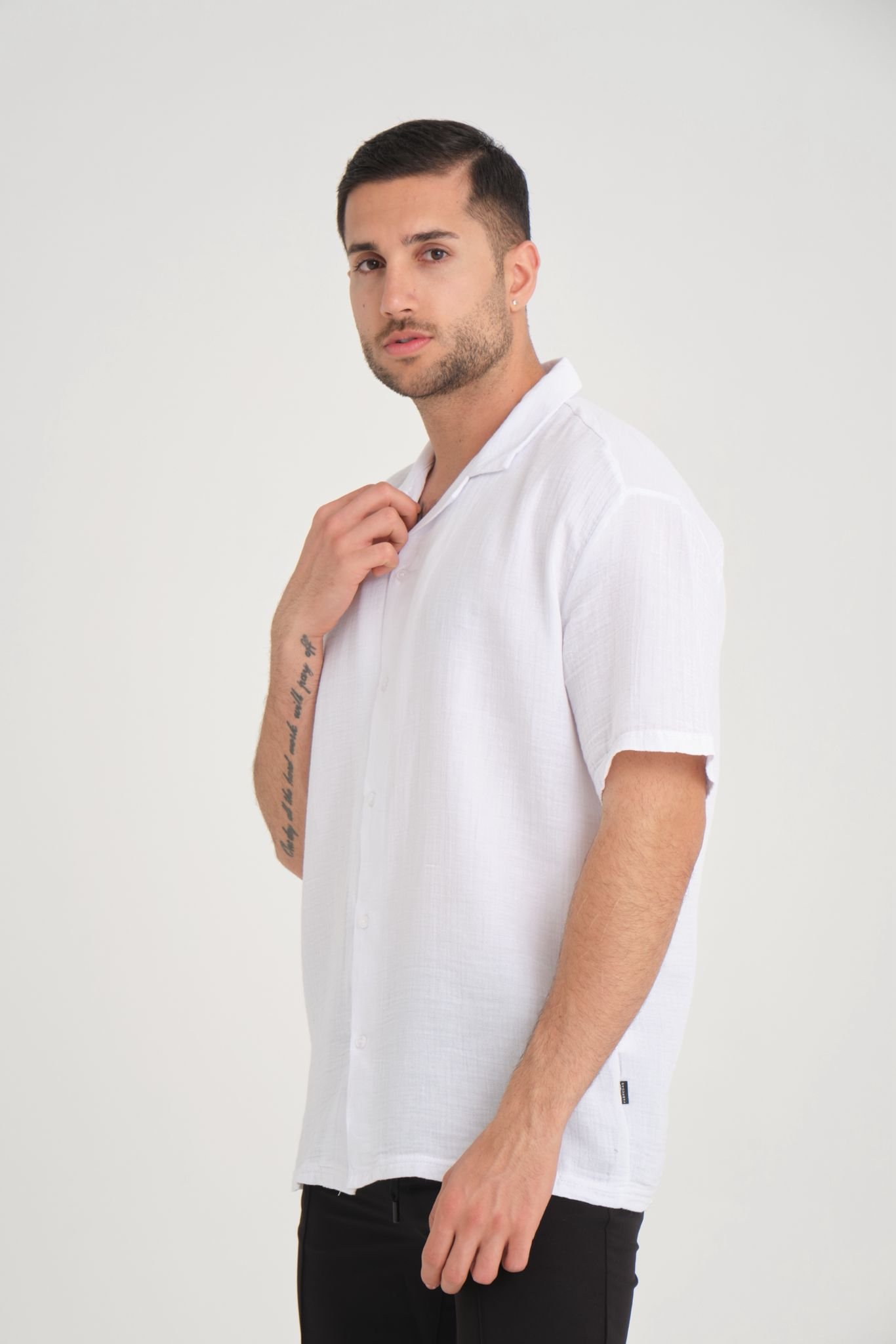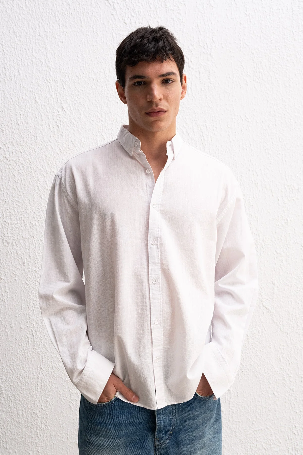Rahat Kalıp Beyaz Müslin Keten Gömlek