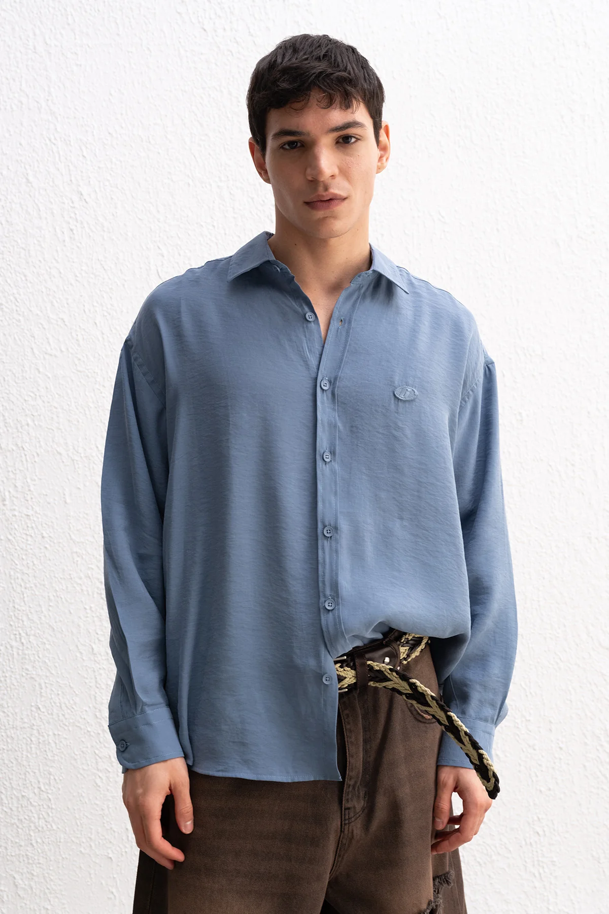OVERSIZE FRESH KETEN LACİVERT GÖMLEK