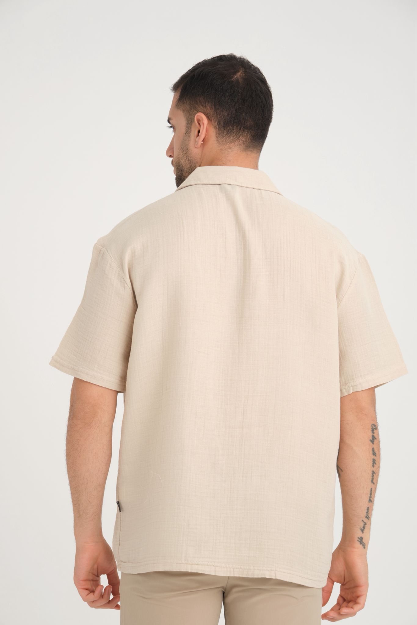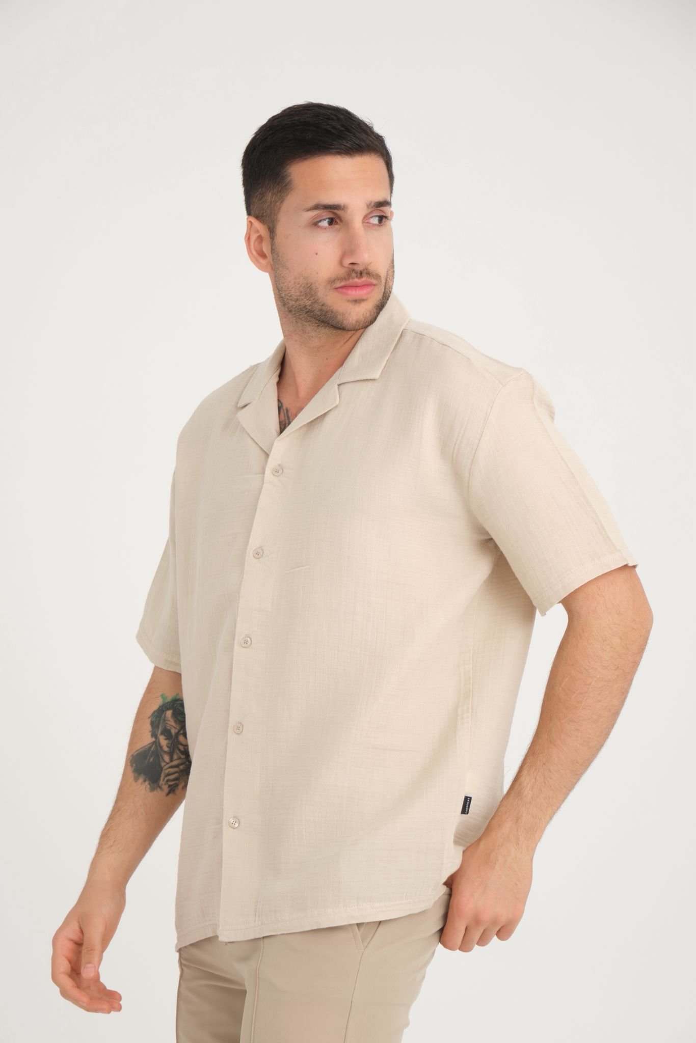Rahat Kalıp Bej Müslin Keten Gömlek