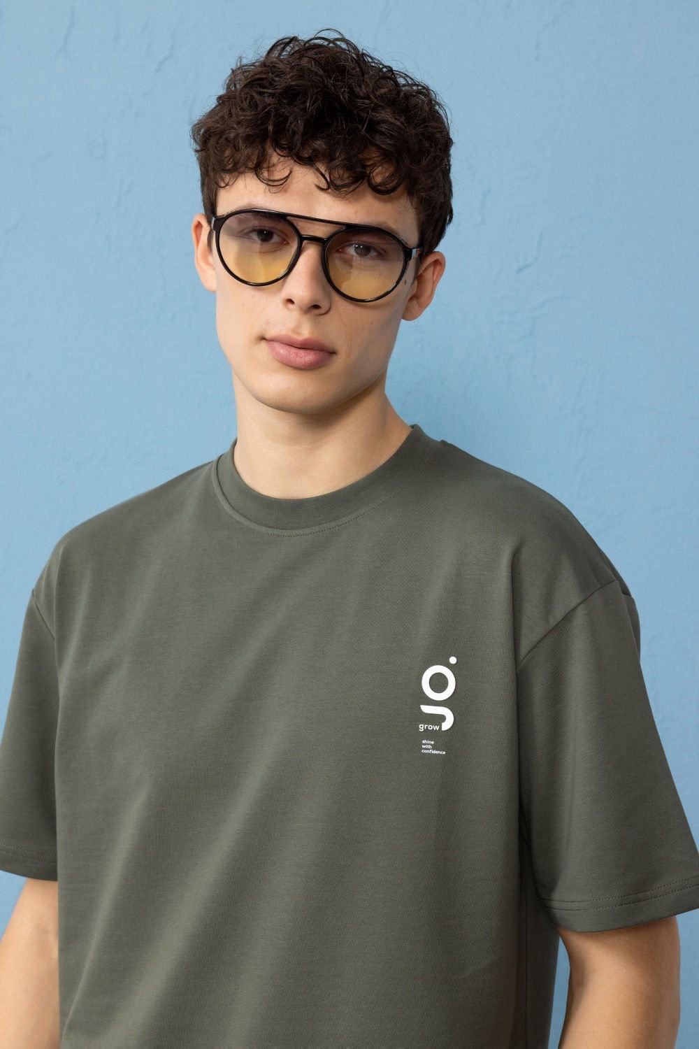 Minimal Baskılı Haki Oversize Erkek T-shirt