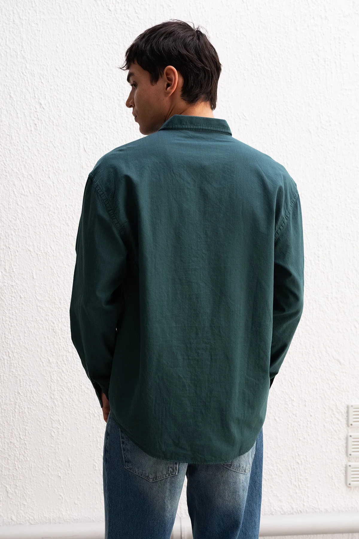 OVERSIZE FRESH KETEN PETROL YEŞİLİ GÖMLEK