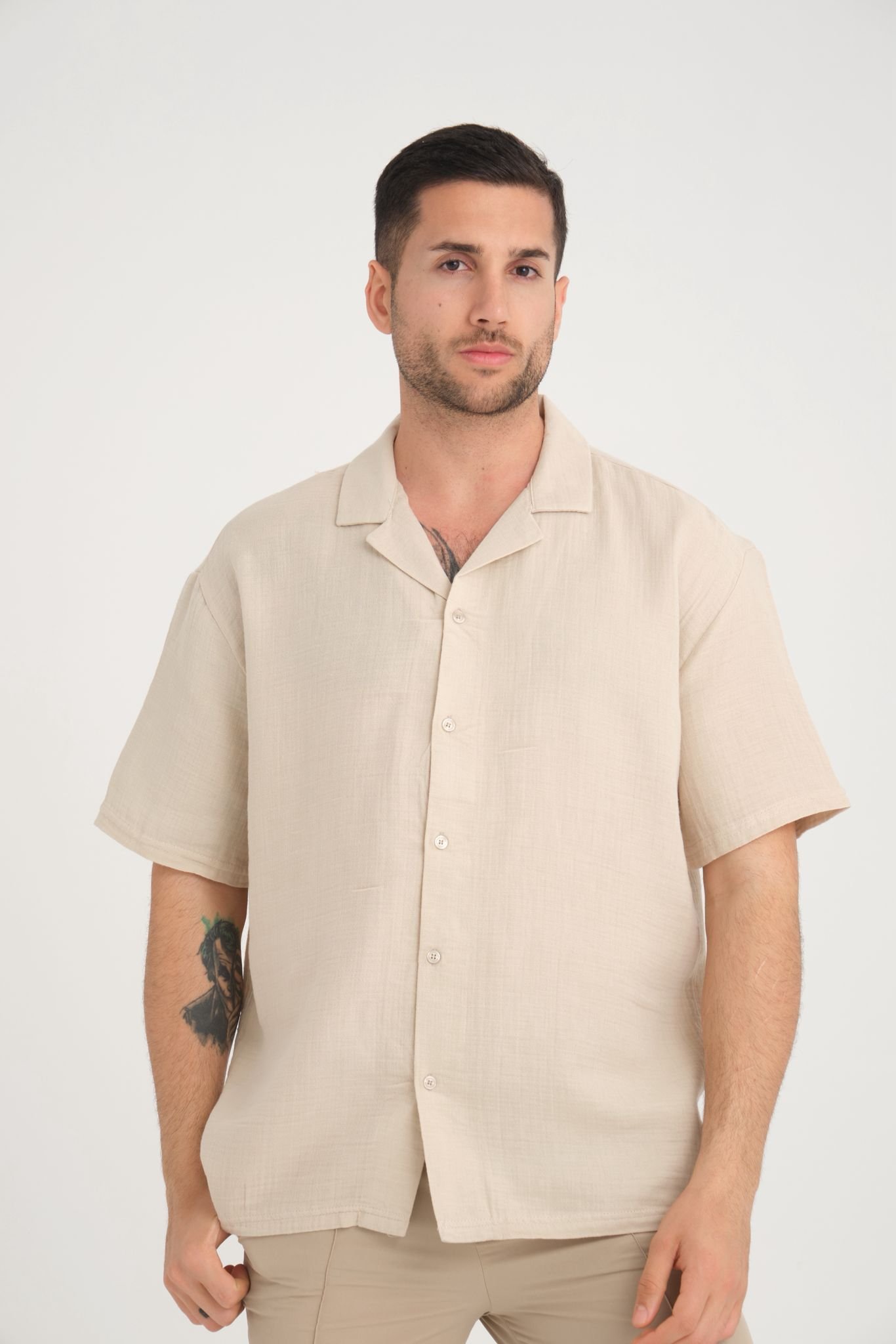 Rahat Kalıp Bej Müslin Keten Gömlek